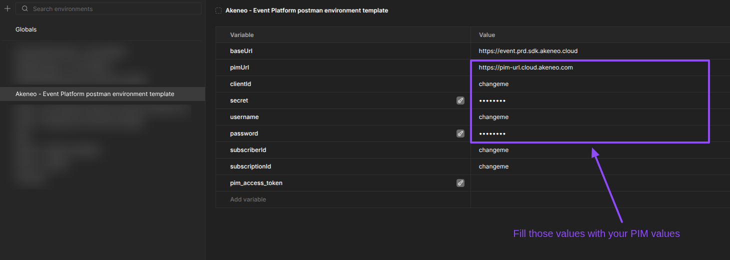 Fill the environment variables with your PIM connection values, and it will automatically generate a pim_access_token if the credentials you provide are valid.